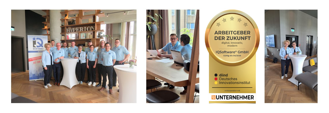 IQSoftware wurde zum zweiten Mal in Folge mit dem renommierten Siegel „Arbeitgeber der Zukunft“ des Deutschen Innovationsinstituts für Nachhaltigkeit und Digitalisierung (DIND) ausgezeichnet. Damit wird unser kontinuierlicher Einsatz für eine zukunftsweisende Unternehmenskultur, Mitarbeiterfreundlichkeit und digitale Transformation bestätigt.